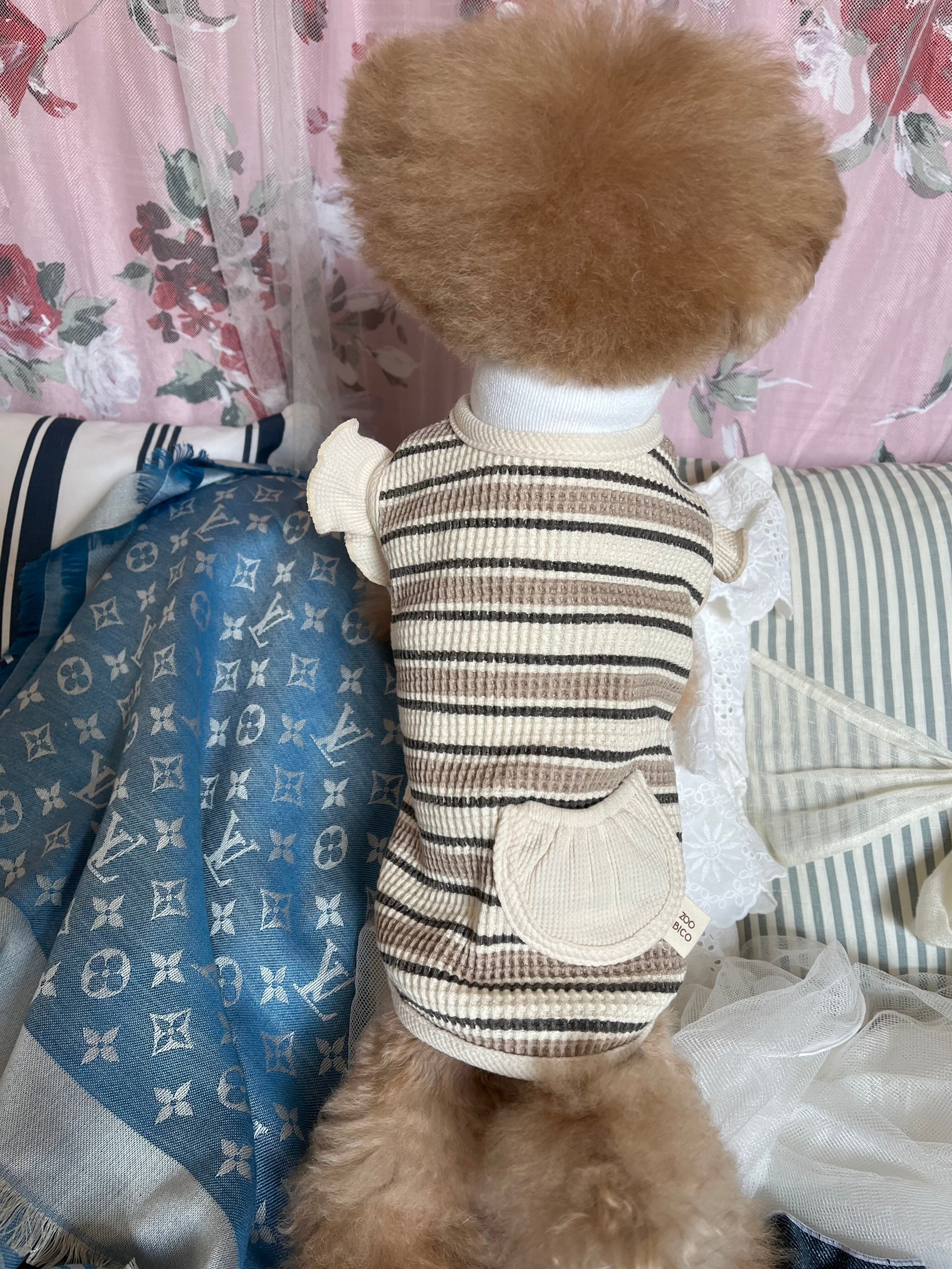 《ワッフルボーダーフリル袖カーデ》犬服 おしゃれ犬服 ドッグウェア わんこ服 ペット用品 ペット服 かわいい犬服 韓国犬服 小型犬 中型犬