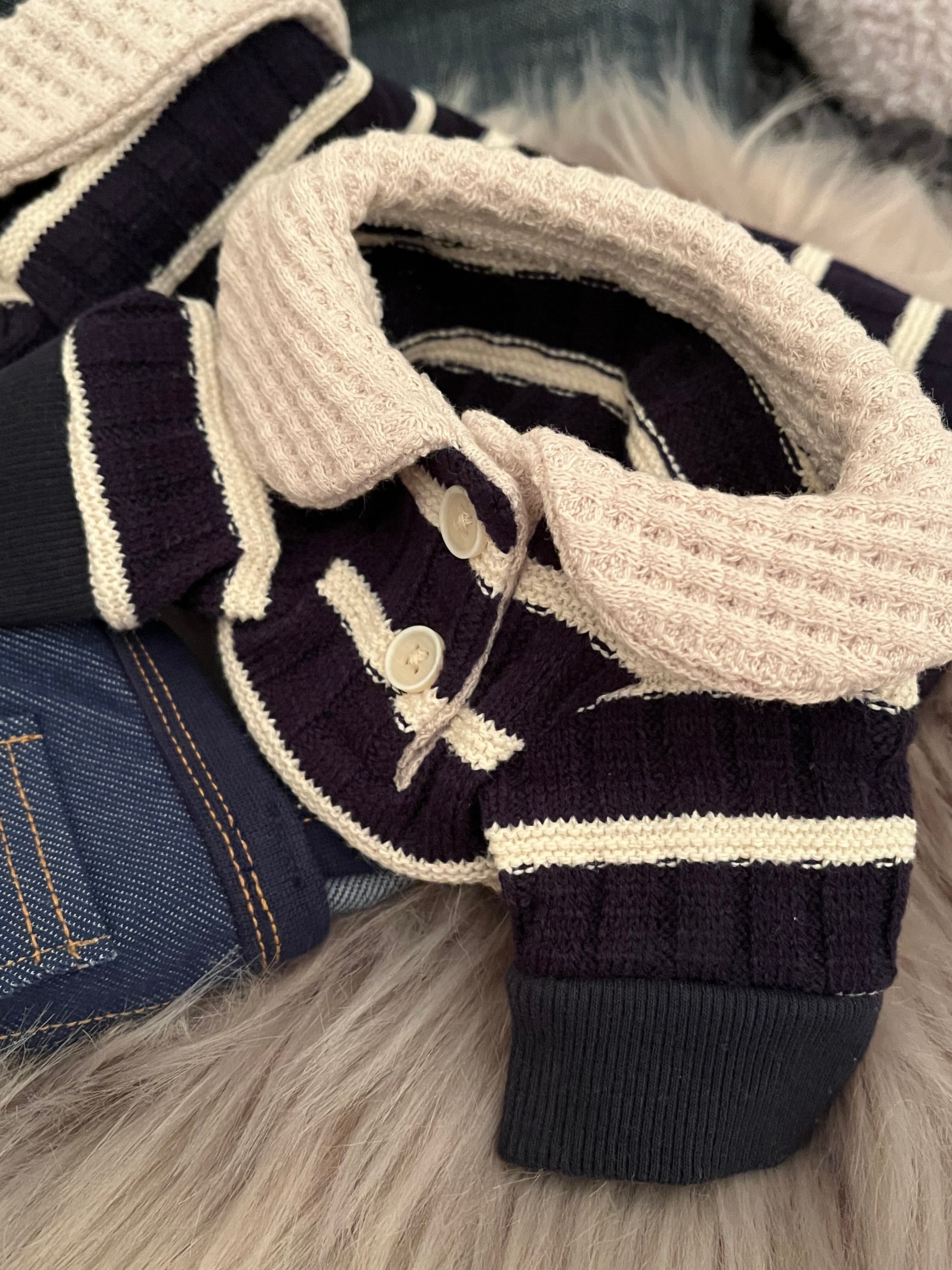 【ワッフル丸襟のストライプニット】です 犬服 おしゃれ犬服 ドッグウェア わんこ服 ペット用品 ペット服 かわいい犬服 韓国犬服 小型犬 中型犬