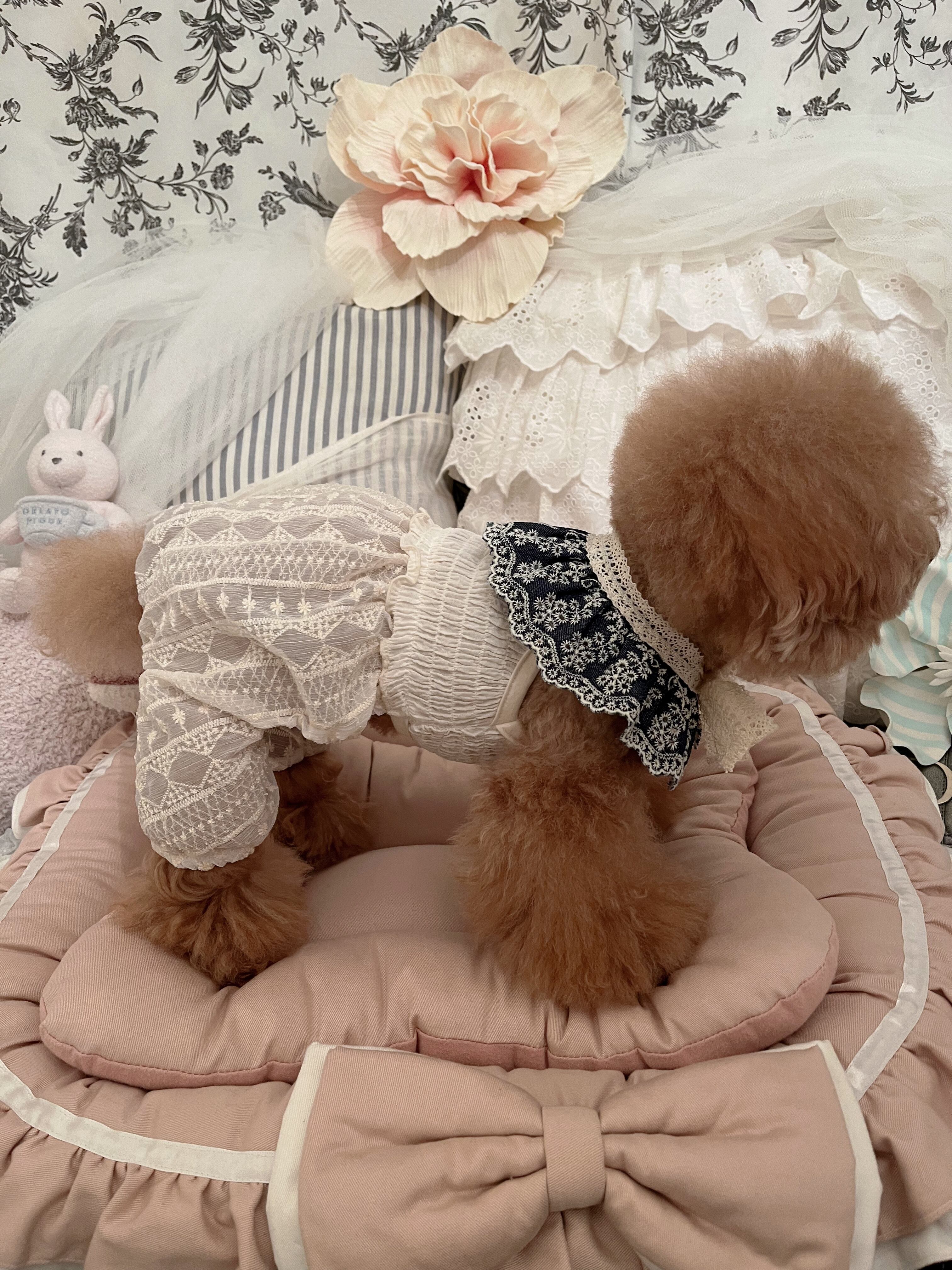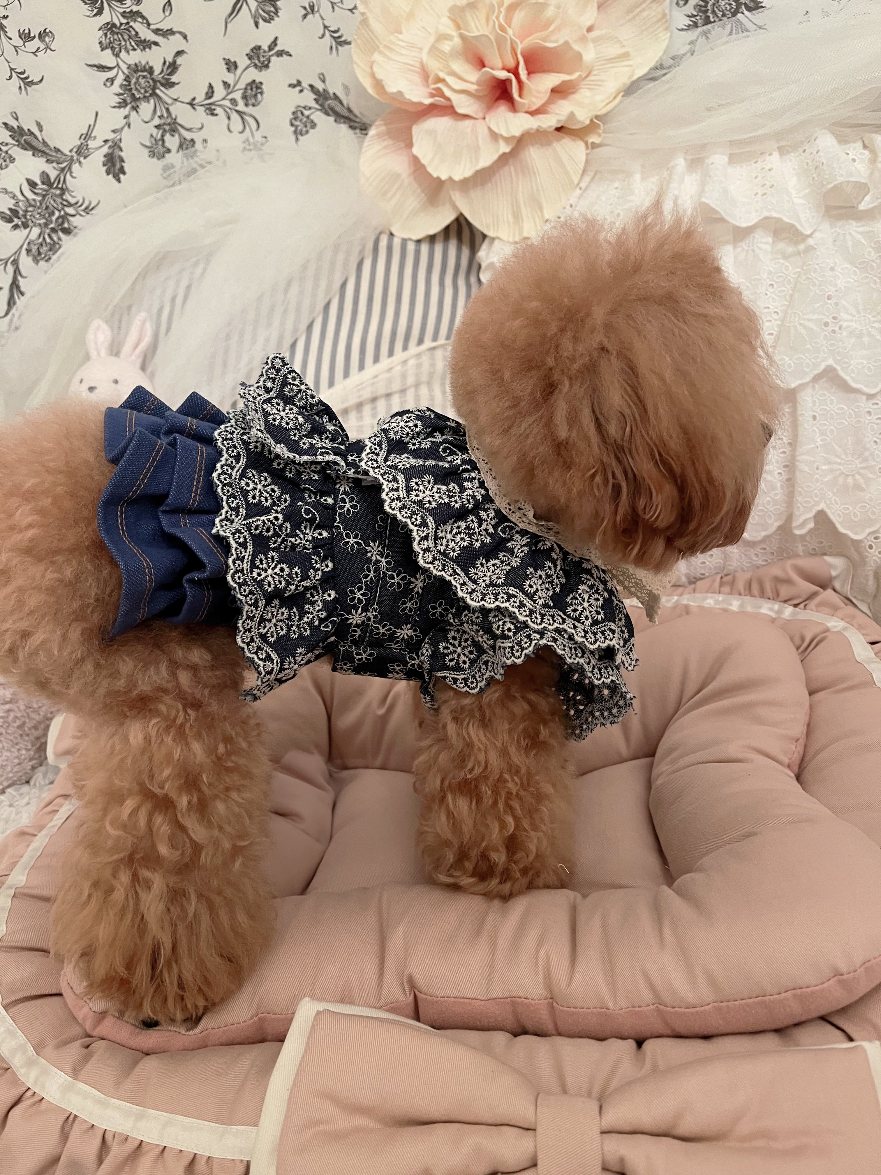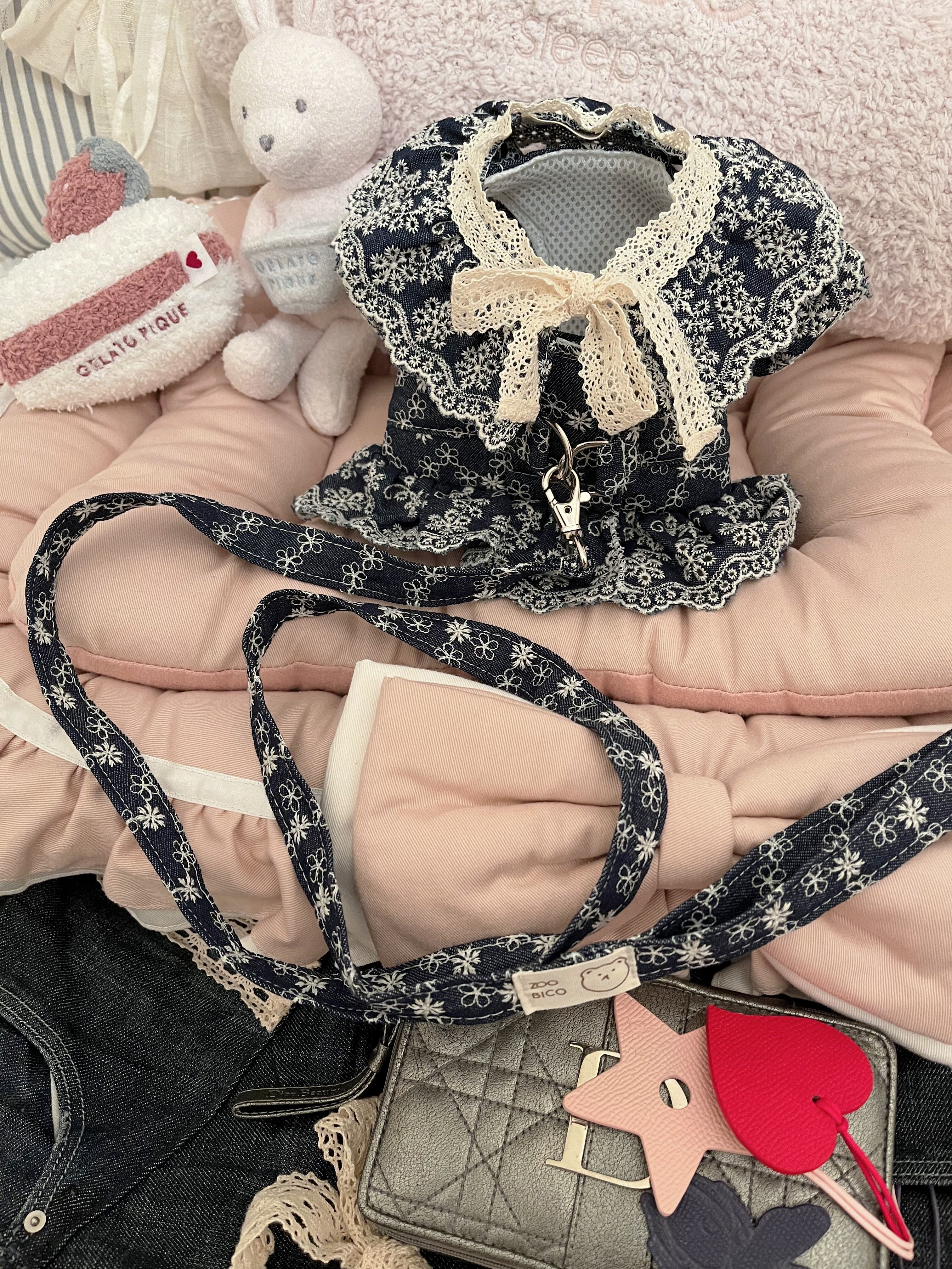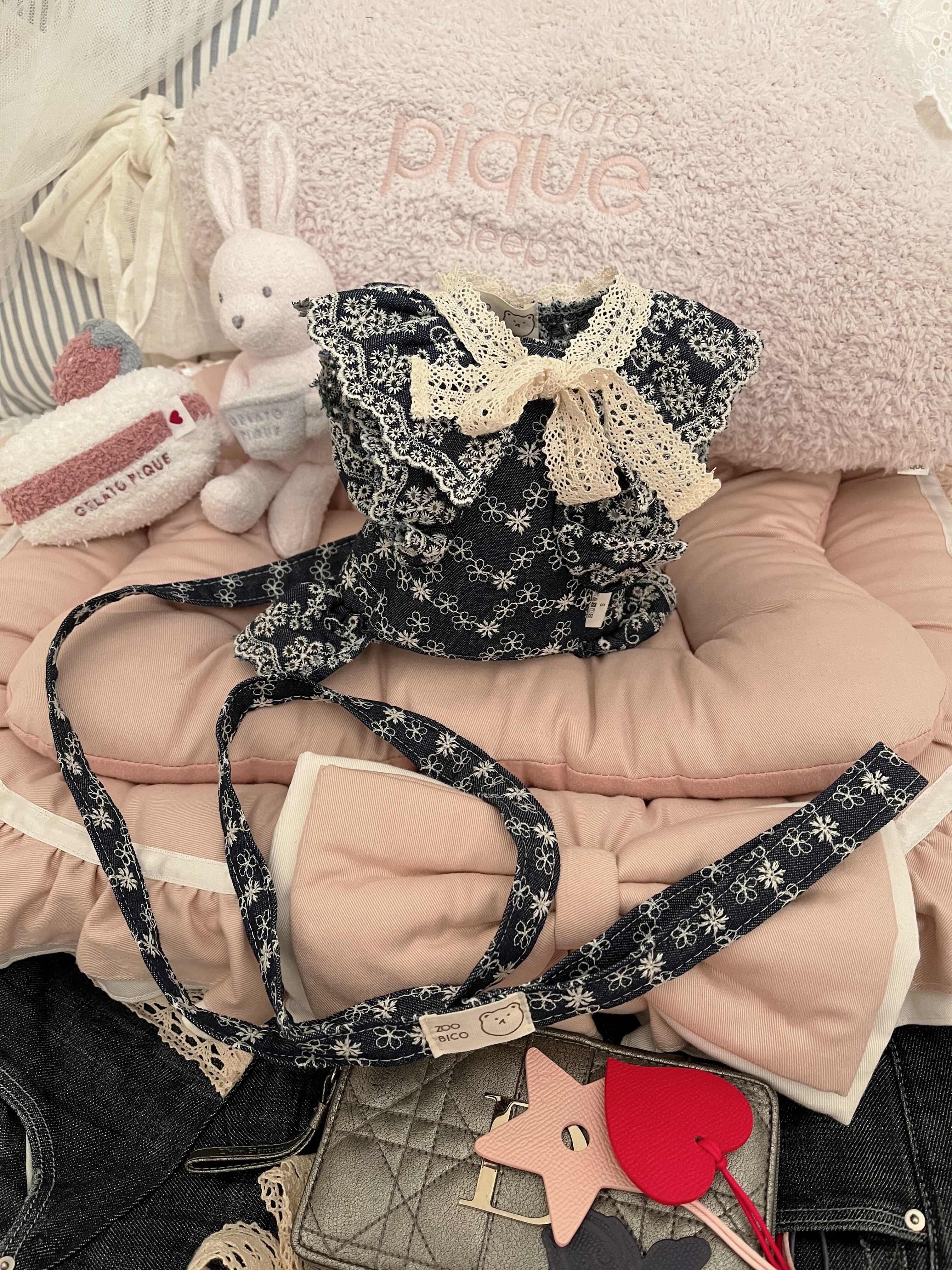 《デニムカットレースケープ》 犬服 おしゃれ犬服 ドッグウェア わんこ服 ペット用品 ペット服 かわいい犬服 韓国犬服 小型犬 中型犬